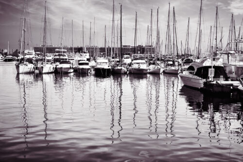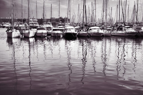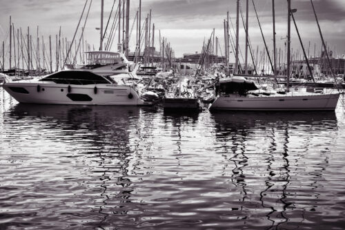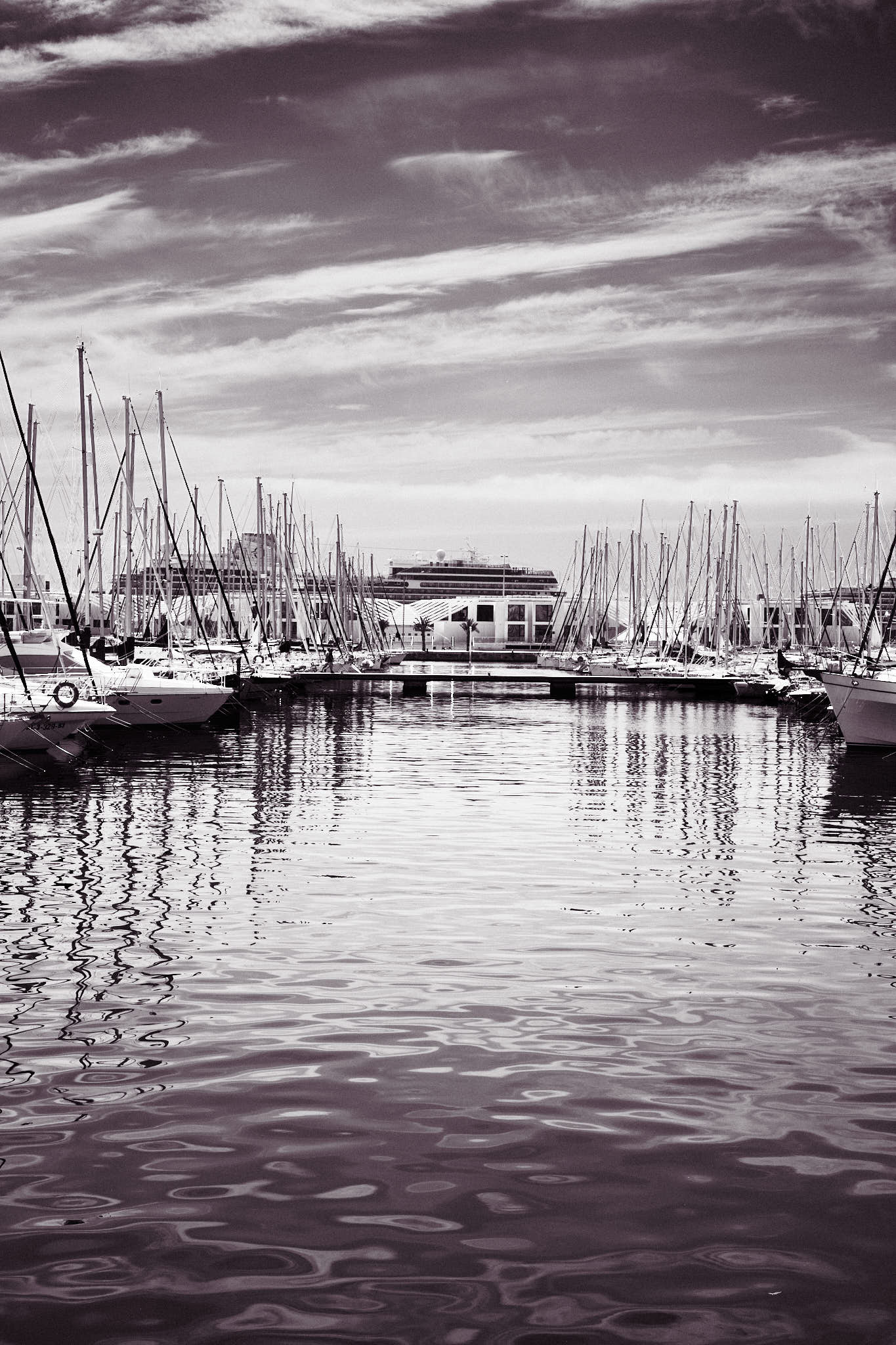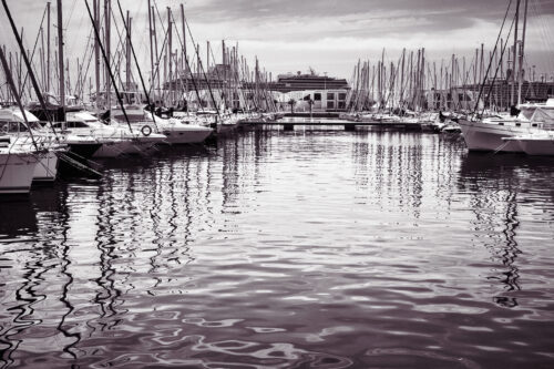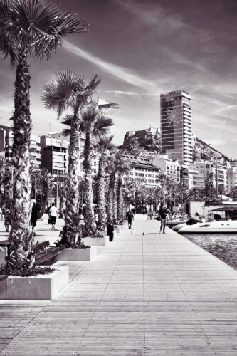 En noir et blanc, la marina d’Alicante perd ses reflets bleus et ses tons chauds, mais elle gagne une autre intensité.
