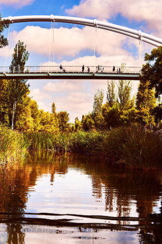 Marcher dans le Turia, c’est traverser des mondes : les ponts anciens côtoient les architectures futuristes, les joggeurs croisent les familles, les cyclistes glissent sous les arbres.