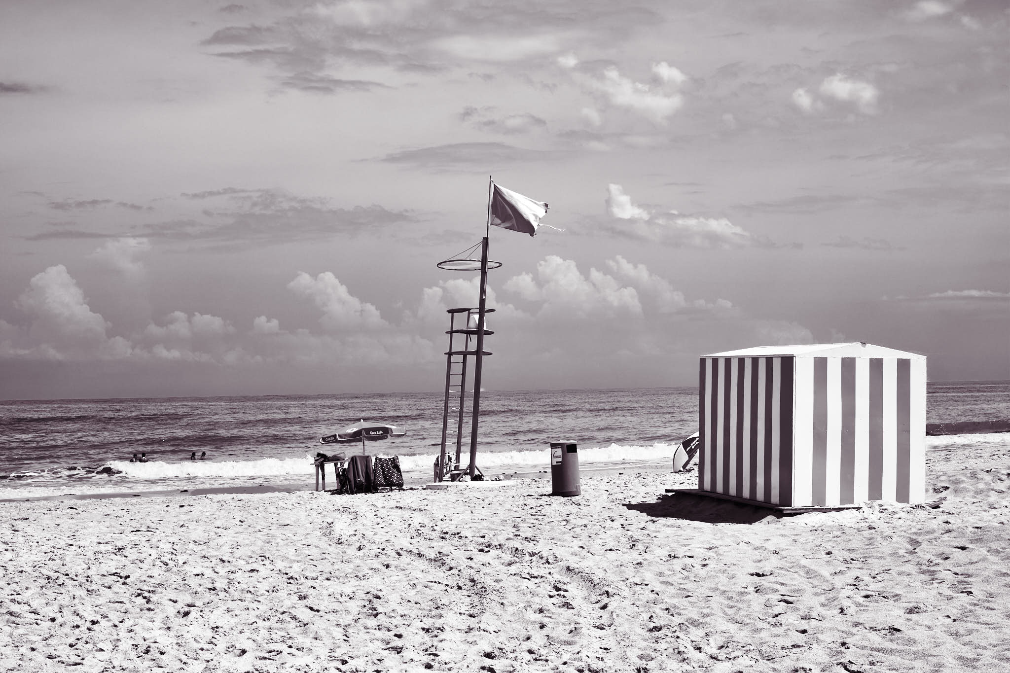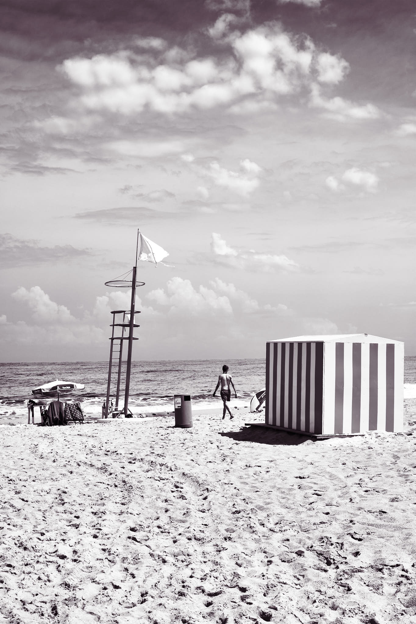 Plus loin, une cabine de sauveteurs se dresse, seule, face à la mer.