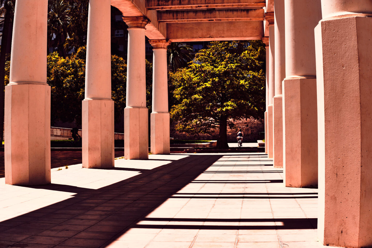 Pour le photographe, c’est un terrain inépuisable. Les allées bordées d’arbres dessinent des couloirs d’ombre où la lumière se filtre en éclats. Les ponts historiques découpent le ciel et offrent des perspectives fortes. Plus loin, les passerelles contemporaines ajoutent des lignes franches et des répétitions géométriques. À chaque heure, le Turia change de visage : doux et vaporeux au petit matin, éclatant à midi, contrasté et dramatique au coucher du soleil.