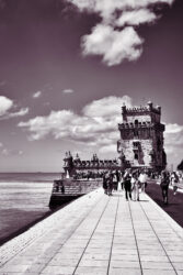 Quelques lieux se sont imposés comme évidents : le château, qui domine toujours la ville et offre des panoramas intemporels ; Alges, dont les abords maritimes ouvrent de larges perspectives ; le Tage, ligne d’horizon mouvante qui structure la cité ; et bien sûr la Tour de Belém, monument emblématique posé au bord de l’eau, dont l’élégance architecturale et la mise en scène lumineuse méritent une série à part entière. Chacun d’eux a donné lieu à une première approche photographique, comme des fragments qui viendront s’enrichir lors de mes prochaines visites.