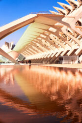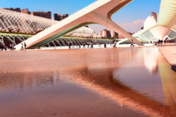 Le plus emblématique est sans doute le Jardin del Turia, un ancien lit de fleuve reconverti en coulée verte qui traverse la ville d’ouest en est. Véritable artère paysagère, il relie différents quartiers et ouvre des perspectives variées pour la photographie : allées d’arbres, ponts historiques, passerelles contemporaines. À son extrémité, la Cité des Arts et des Sciences prolonge ce mouvement avec ses formes futuristes, tandis qu’en amont, le parc de Capçalera offre un paysage plus naturel, marqué par l’eau et de vastes espaces.